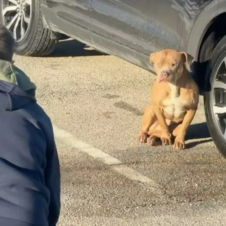 When the rescue team arrived, they were astonished by what they found. There, amidst parked cars and cold concrete, sat a small, fragile puppy, his fur soaked from the morning dew, his body shaking from the bitter cold. The puppy was painfully thin, his ribs visibly protruding beneath his dirty coat, and his eyes, wide with fear, scanned the area as if searching for help.