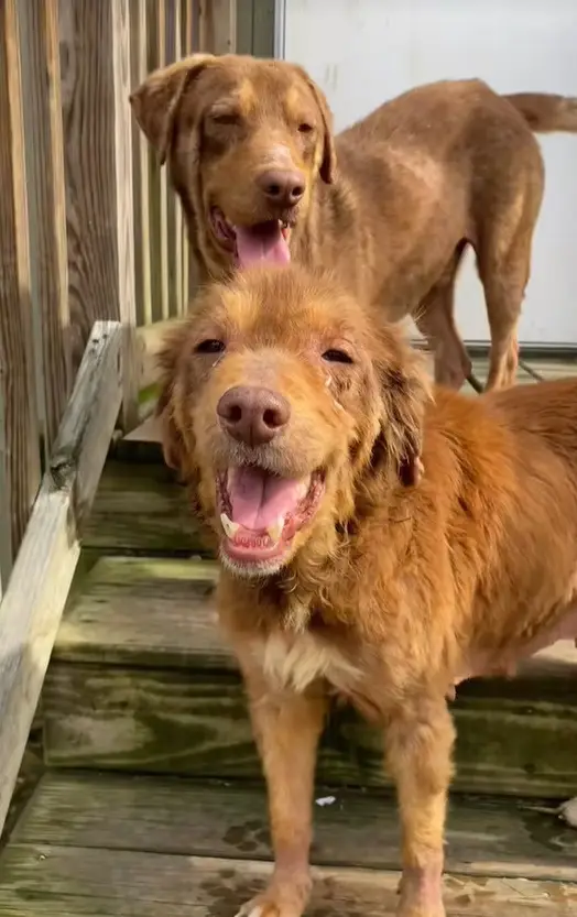 Neighbors occasionally caught glimpses of the two dogs, their ribs painfully visible, their fur matted and dull. Max, a gentle Labrador mix, and Luna, a spirited terrier, were slowly fading away, forgotten and unloved.