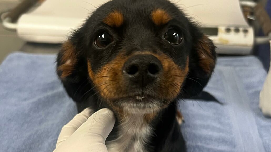 A three-and-a-half-month old puppy, weighing only eight pounds, was found by animal control officers in Watts, California. Her name is Dottie, and she is on “Orange Alert” at Harbor Animal Care in San Pedro.