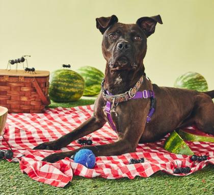 Smokey was rescued by the PSPCA from cruel conditions on November 10, 2020. He wasn’t very happy in his old life, but all of the kind people at the shelter have made a huge difference. Once he became a bit more accustomed to shelter life, he learned about chasing balls, chewing on toys and playtime. Then came going for walks and food rewards – oh goody!