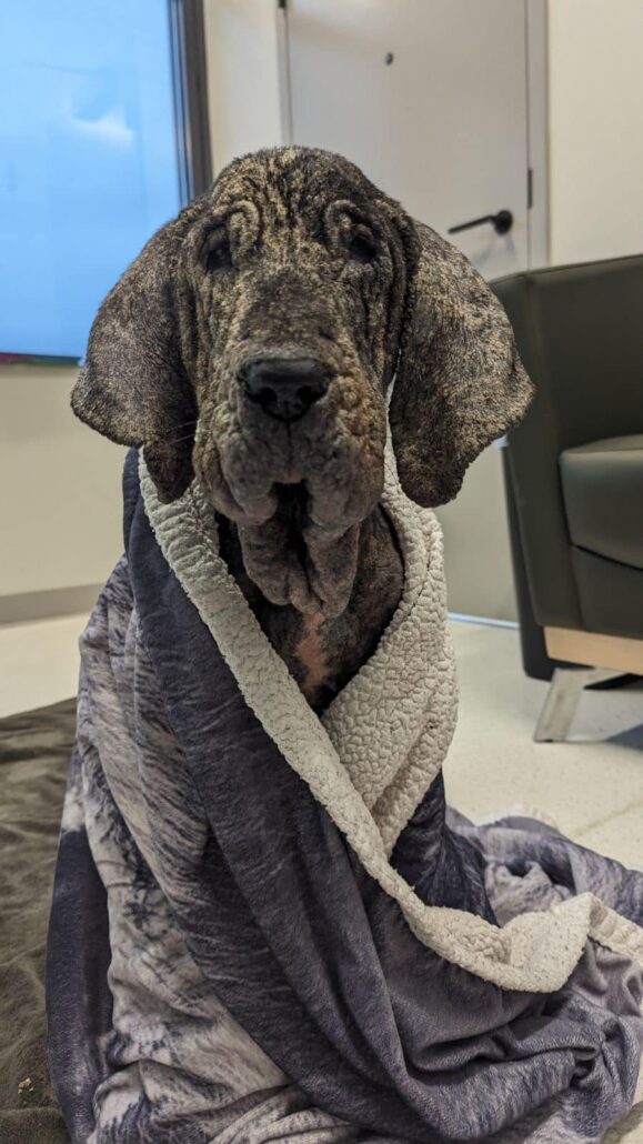 It had been a Good Samaritan who rescued her from the horrible conditions and brought her to the rescue when it was clear she was in worse shape than originally thought. Evergreen Veterinary Hospital didn’t hesitate to get Peaches in for emergency care.