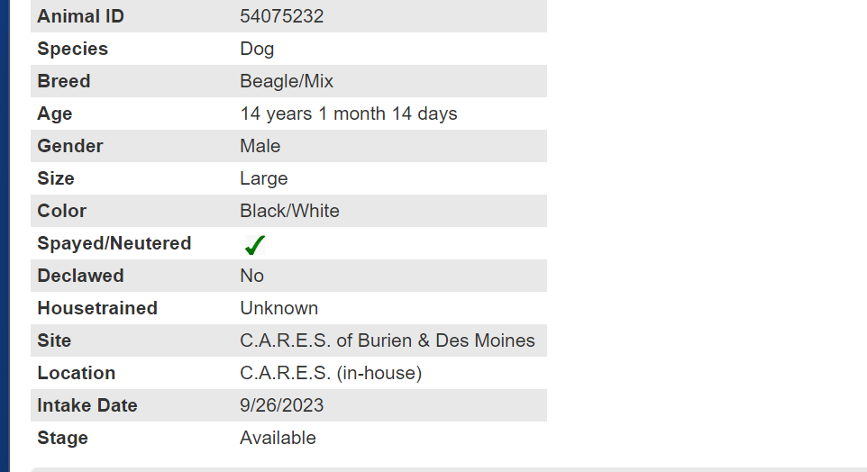 Please share this sweet old guy’s plight with friends, family and social media contacts. He’s waiting for his new home and rightfully so.