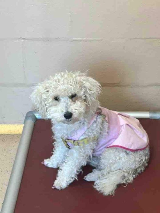 At a Texas shelter, a small, white poodle wearing a pale pink dress, sits nervously in a small cage waiting for her teenage owner to come and take her home. Sadly, the situation can not have a happy reunion for this little dog; her family is gone – they have been deported.