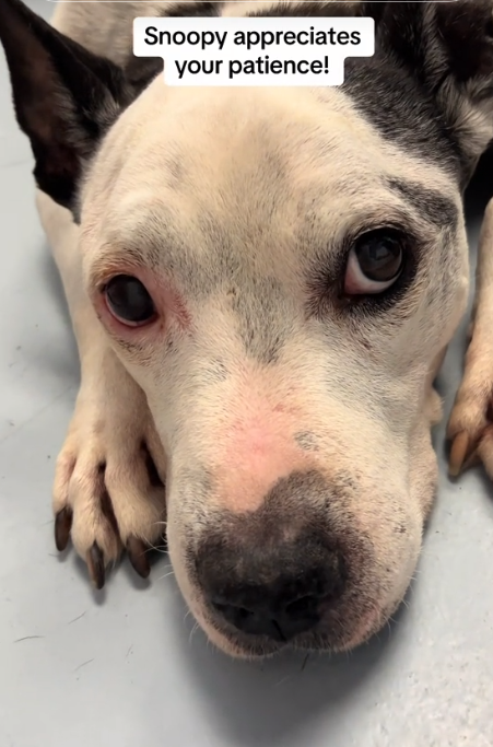 Right now, the social isolation is weighing on Snoopy, and according to the shelter staff, Snoopy does this to “self soothe.”