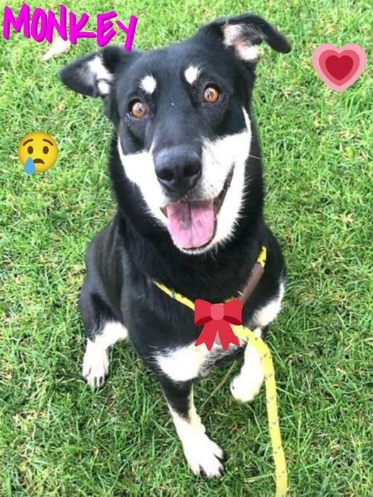 Let’s share Monkey on social media and help her find a wonderful, loving family. She weighs 56 pounds, is spayed, possibly house trained, very sweet, beautiful and healthy. According to shelter notes, she is not reactive to other dogs.