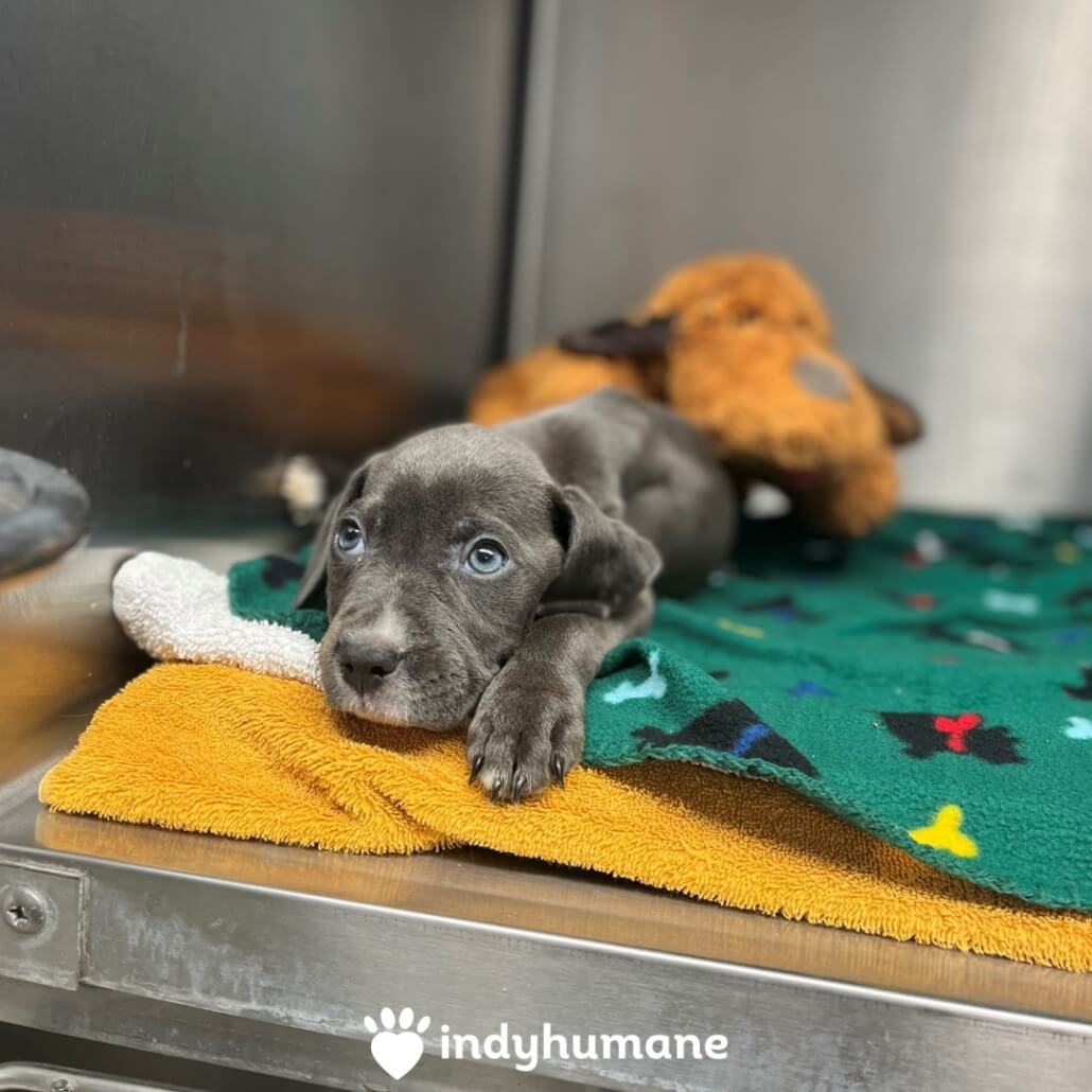 On Thursday, the team at IndyHumane located in Indianapolis, answered the door and greeted a Good Samaritan holding a tiny bundle in her arms. That little bundle turned out to be an extremely malnourished puppy who needed emergency veterinarian care. The puppy was rushed inside to the medical ward where it was feared this emaciated pup could be suffering with parvovirus.
